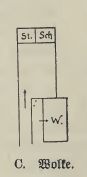Abbildung 2 gibt die Skizzen von drei Gehöften aus der Hauländergemeinde Alt-Borui bei Neutomischel, aus denen sich erkennen lässt, wie verschieden und eigenartig die Hauländer-Gehöfte angelegt sind. Das um 1760 erbaute Gehöft des Heinrich Kutzner (Abbildung 2A) ist eines der größten der Gemeinde; außer dem dem Wohnhause angebauten Pferdestall besitzt es zwei Stallungen für Rindvieh und Schweine sowie einen Wagenschuppen und ein Scheune; der Hof ist länglich mit zwei Einfahrten an den Schmalseiten. Das etwas einfachere Kothsche Gehöft (Abbildung 2B) mag als Typus eines Gehöfts mittlerer Größe dienen. Eines der kleinsten ist das des Gustav Wolke (Abbildung 2C), welches nur ein Nebengebäude besitzt, das zur Hälfte als Stall für Kleinvieh, zur Hälfte als Scheune eingerichtet ist (abgesehen von einer neuen Erweiterung). Die Wohnhäuser dieser wie aller Gehöfte in Alt-Borui zeigen die in Abbildung 1 vorgeführte Anlage. Von Gehöften, deren Entstehungszeit bekannt ist, mögen aus der Gemeinde noch genannt sein das des August Heider von 1764, das des Wilhelm Freier von 1775, sowie das um 1827 errichtete des Karl Fischer. Die Erneuerungen, welche die Gehöfte erfahren haben, beschränken sich auf ein verhältnismäßig geringen Maß; irgendwelche schmücken Formen besitzen sie nicht.